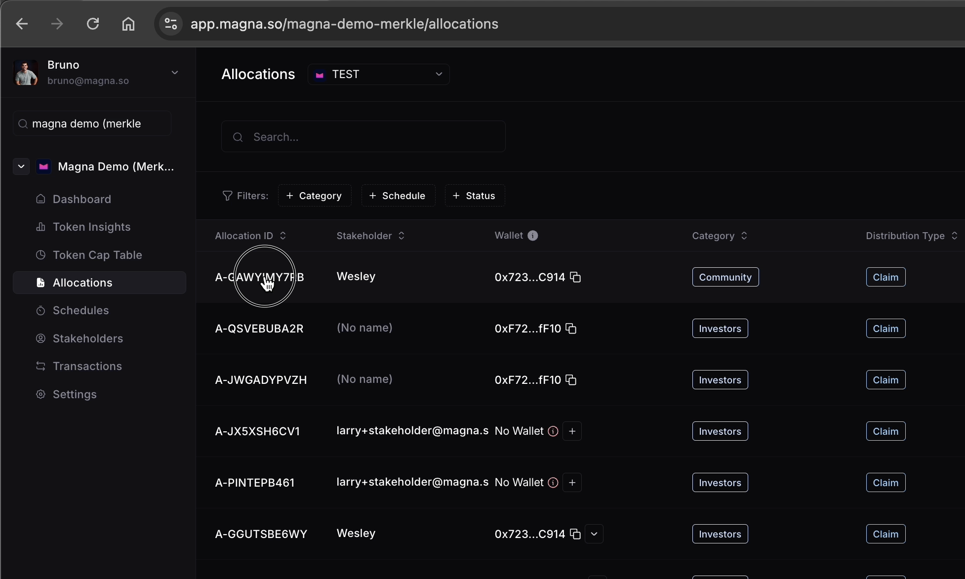 1. Open the allocation whose wallet you wish to change.